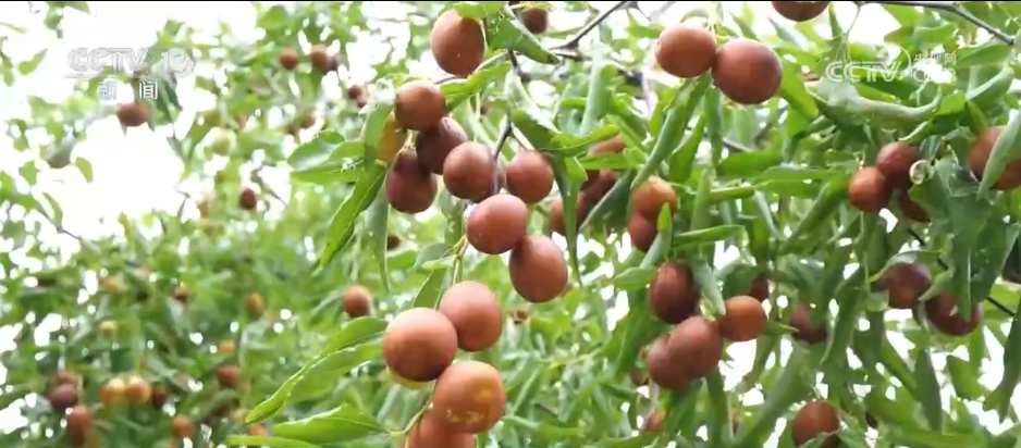 运粮车等待正在侧,本地4.5万亩水稻收割进入尾声,金黄的谷粒倾泻而下,枣农们穿越林间,