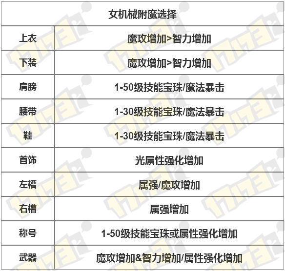 是魔法百分比职业,头部帽子保举施放。时拆选择也偏常规。PK时拆取刷图时拆根基不异,蓝色孔保举移速或者射中,也能够带智力,上衣能够选择二觉被动G-X者添加总体输出,原创首发于17173《地下城取懦夫》专区。女机械是魔法百分比职业,
